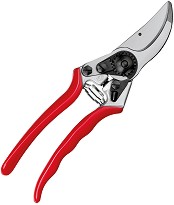 Градинската лозарска ножица от "Felco" е подходяща за подрязване на лозя, храсти и малки клони с диаметър до ∅ 2 cm. Моделът е ергономичен, с компактна режеща глава, разположена под ъгъл спрямо тялото на ножицата. Остриетата са изработени от висококачествена закалена стомана и осигуряват чист и прецизен отрез, а дръжките са с противоплъзгащо покритие, което осигурява отличен комфорт при работа. Подложното острие е изтънено с цел по-добрата маневреност при работа и е снабдено с улей за оттичане на растителните сокове и ограничаване на слепването на двете остриета. В основата на дръжките има гумени тампони, които редуцират негативния ефект от натиска при рязане за дланта и китката. Специалната микрометрична система гарантира прецизно регулиране на притегнатостта на остриета, а подсиленият улей е предназначен за инцидентно изрязване на тел до 2 mm.
