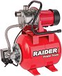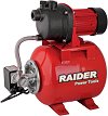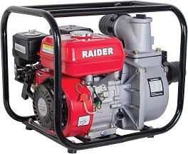 Водната помпа "RD-GWP04" на "Raider" позволява изпомпване на вода без използване на електричество. Тя е идеална за поливане, увеличаване на налягането и прехвърляне и изпомпване на чешмяна и дъждовна вода, както и хлорирана вода от басейни. Помпата е с едноцилиндров, бензинов четиритактов двигател с въздушно охлаждане, максимална мощност 4.9 kW и работен обем - 196 m3. Тези характеристики ѝ дават възможност да изпомпва максимално количество от 933 l / min. Водната помпа е с ръчно стартиране на двигателя. Максималната смукателна дълбочина е 8 m, а височината на изпомпване - 38 m. Входът и изходът на помпата са с диаметър ∅ 8 cm (3").